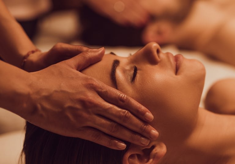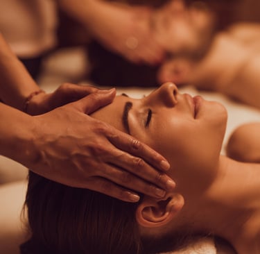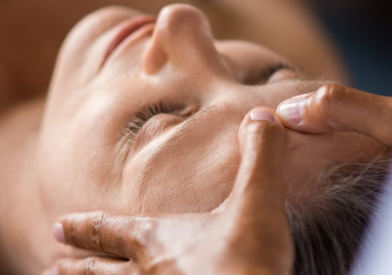 Use of heated rosemary oil with biotin, jojoba and castor oil applied to the scalp to induce relaxation & nourish the scalp and hair Techniques performed on the head and parts of the face to promote hair growth & increase relaxation.