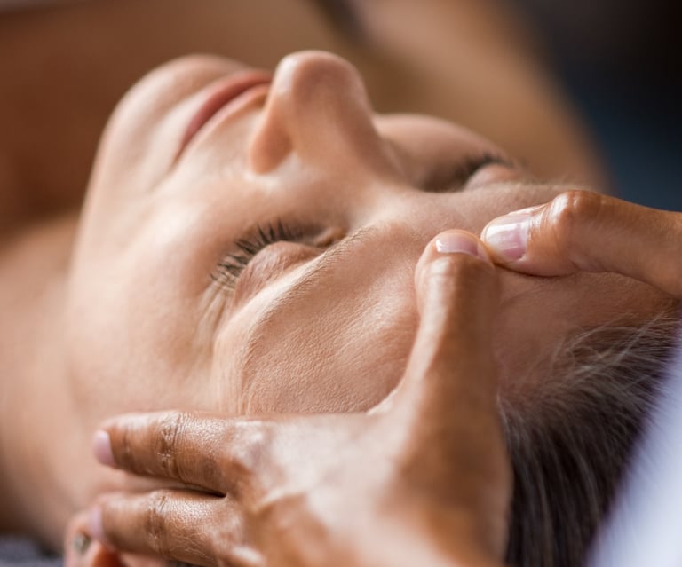 Use of 100% rosemary oil with biotin, jojoba and castor oil applied to the scalp to induce relaxation & nourish the scalp and hair. Techniques are performed on the head and parts of the face to promote hair growth and increase relaxation.